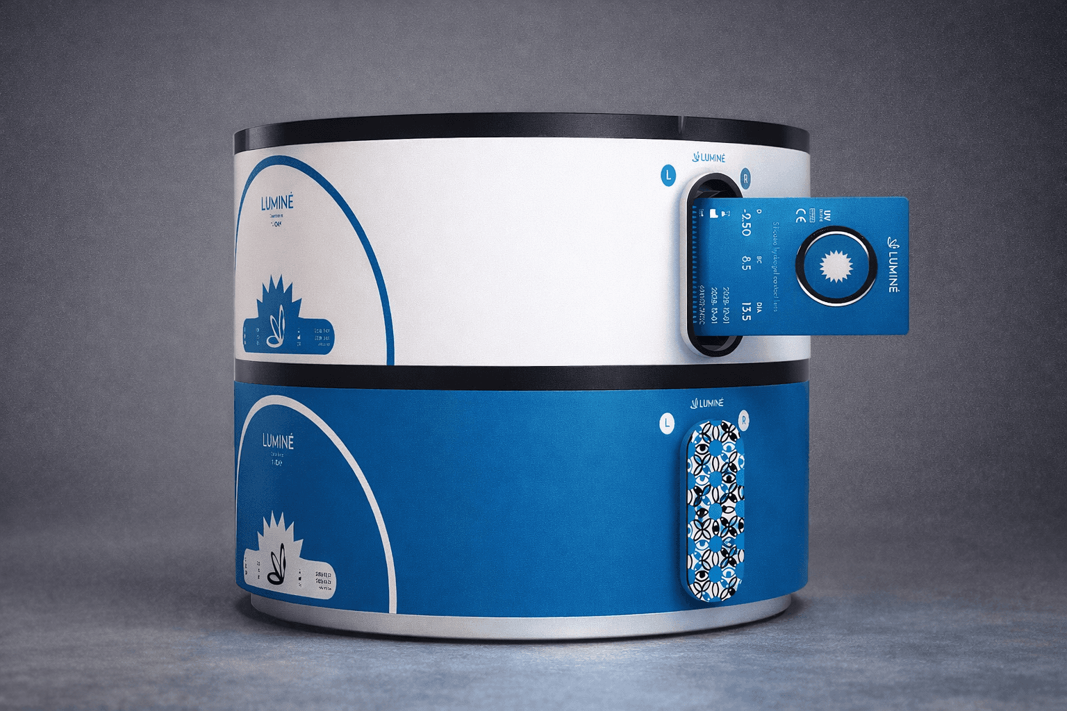 Luminé — бренд контактных линз, который упрощает повседневный уход за зрением. Фокус на быстром утреннем ритуале, комфорте пользователя и заботе о здоровье глаз. Бренд также продвигает осознанное потребление и снижение экологического следа.
